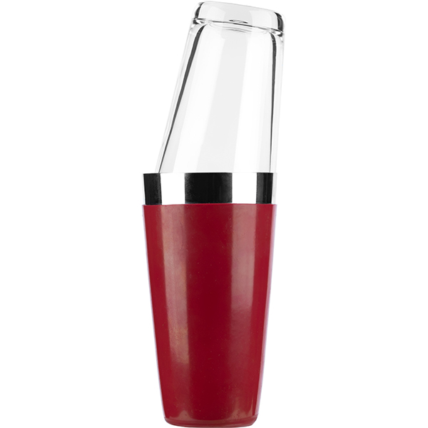 —Шейкер американский «Бостон» винил;сталь нерж.,стекло;0,5л;D=93,H=295мм;красный,прозр.