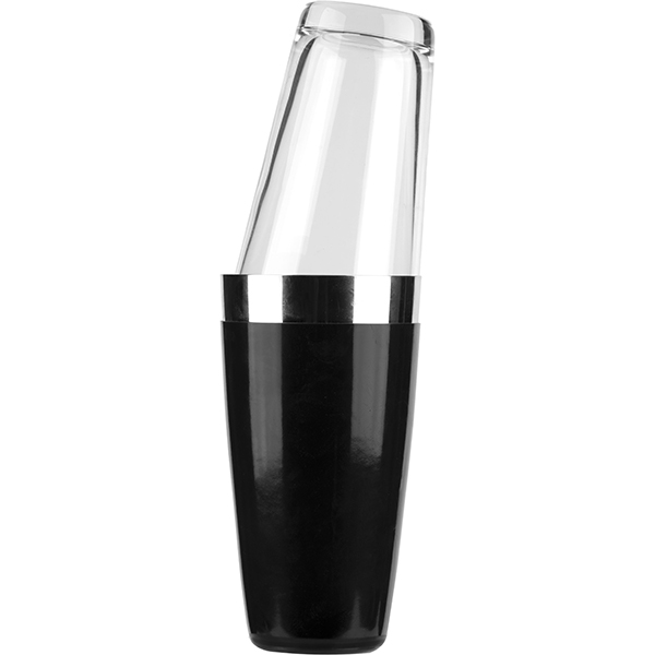 —Шейкер американский «Бостон» винил;сталь нерж.,стекло;0,5л;D=93,H=295мм;черный,прозр.