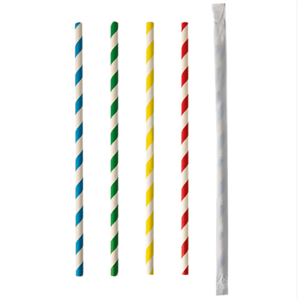 Трубочки «Спираль» без сгиба в индивидуальной упаковке[100шт];бумага;D=6,L=200мм;разноцветн.