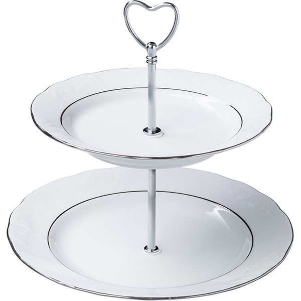 Этажерка «Надежда» 2 яруса;фарфор;D=24/20,H=22,5см;белый,серебрян.