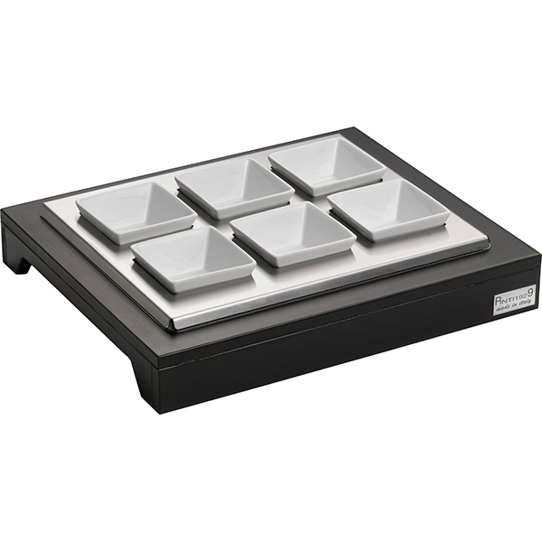 Станция буфетная с салатниками [6шт] с охлаждением;дерево;,H=55,L=380,B=320мм;тем.корич.