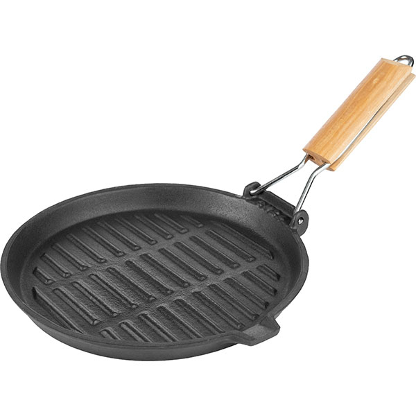 Сковорода-гриль «Эмбер Каст Мэтт»;чугун,дерево;D=220,H=18мм;черный,св. дерево