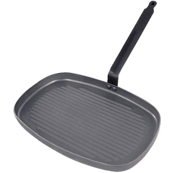 Сковорода-гриль прямоуг. «Карбон Плюс»;белая сталь;,H=3,L=38,B=26см;серый