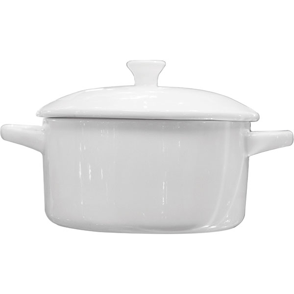 Кастрюля для запекания «Кунстверк» с крышкой;фарфор;425мл;D=16,5см;белый