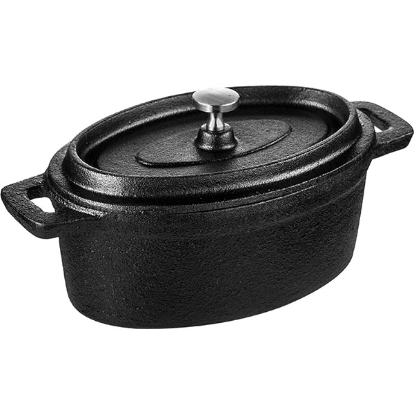 —Кастрюля для запекания овальная с крышкой;чугун;450мл;,L=15,B=10см;черный