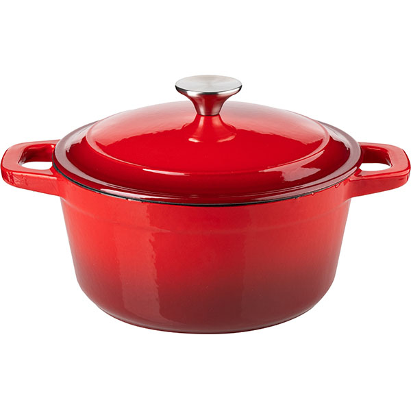 Кастрюля для запекания с крышкой;чугун;2,6л;D=20,H=16см;красный