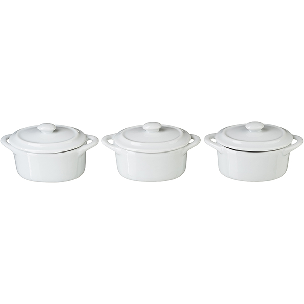 —Кастрюля для запекания «Миньон» с крышкой[3шт];фарфор;60мл;D=7см;белый