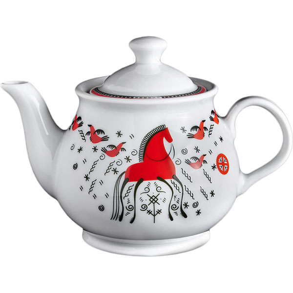 Чайник заварочный «Мезень» Классик Кони;фарфор;400мл;D=107/166,H=90мм;белый,красный