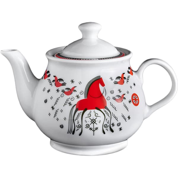 —Чайник заварочный «Мезень» Классик Кони;фарфор;0,6л;белый,красный