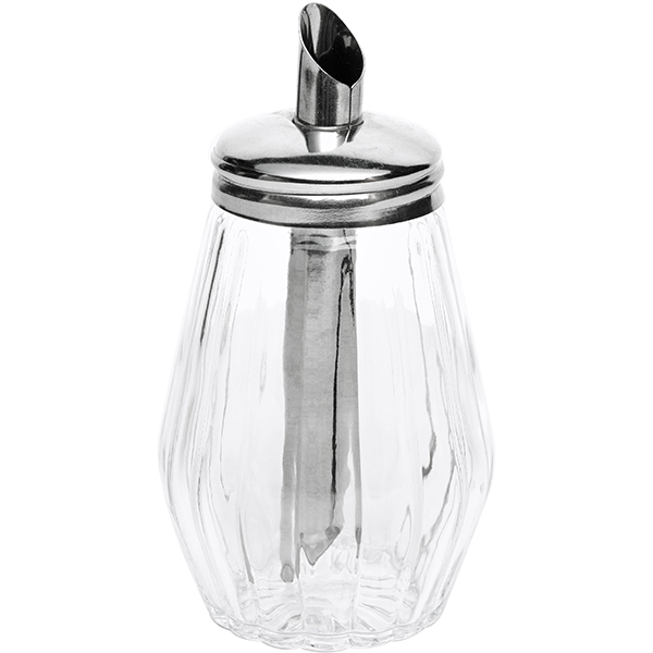 Сахарница с дозатором;стекло,сталь нерж.;290мл;D=7,H=16,L=7,B=7см;прозр.,металлич.