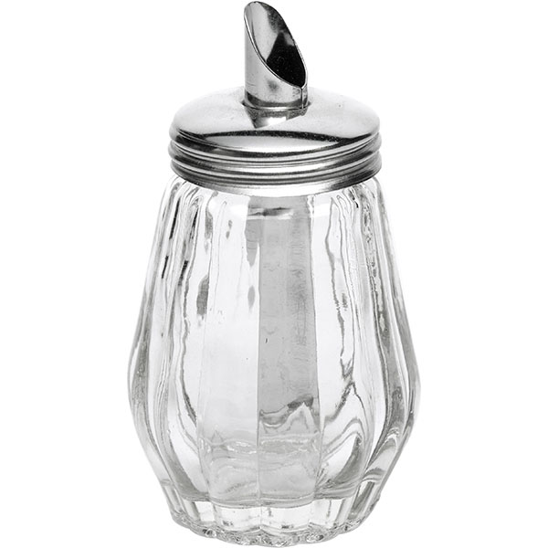 Сахарница с дозатором «Мини»;стекло,сталь нерж.;150мл;D=6,H=12,L=6,B=6см;прозр.,металлич.