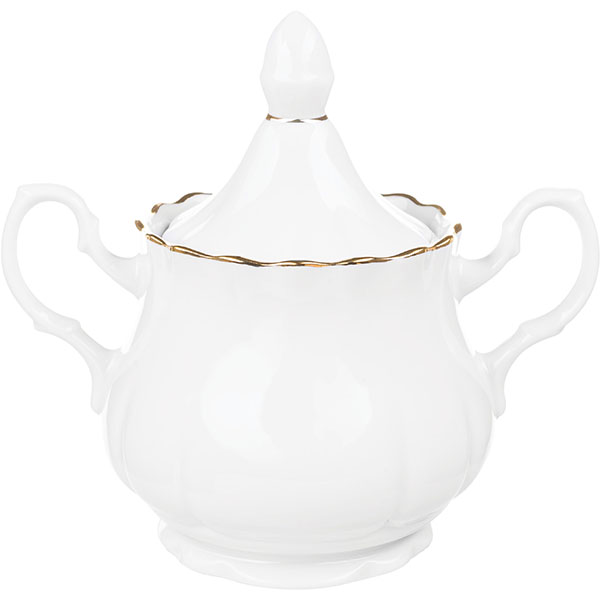 Сахарница «Романс» с крышкой;фарфор;0,55л;,H=11,L=17,3см;белый,золотой
