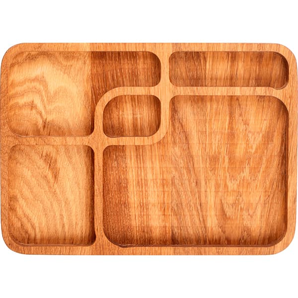 Менажница 5 секций прямоугольная;дуб;,H=25,L=350,B=250мм;деревян.