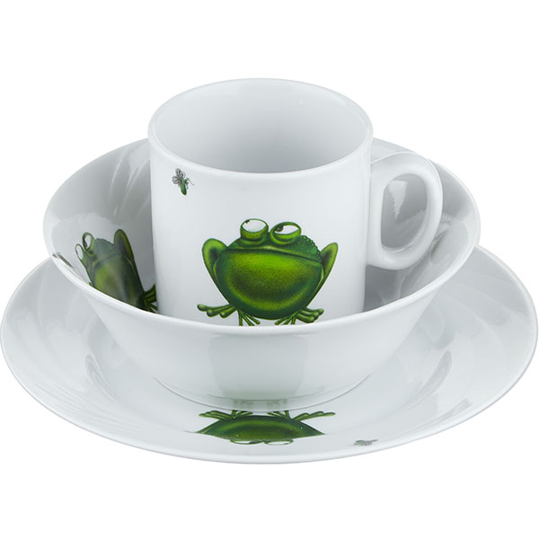 —Набор посуды «Лягушка» детский 3 предмета;фарфор;белый