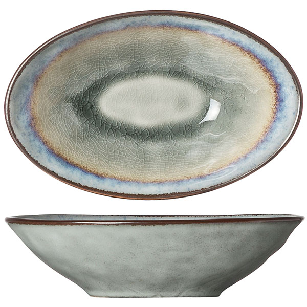 Салатник овальный;керамика;,H=4,L=14,B=9см;бирюз.,зелен.