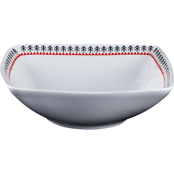 —Салатник «Мезень» Принц Веточка квадратный;фарфор;300мл;,H=45,L=145,B=145мм;белый,красный
